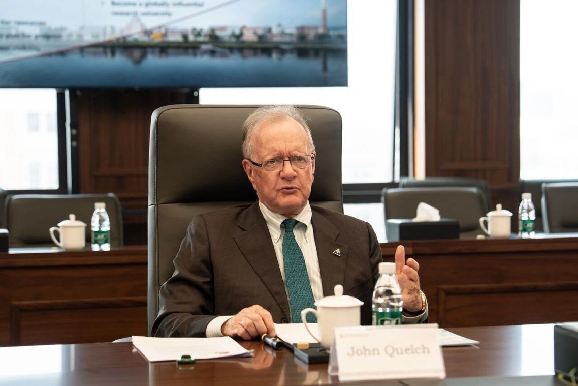 陈十一对约翰·奎尔奇、邱文生一行的到来表示热烈欢迎,并简要介绍学校建设发展。他对昆山杜克大学的办学成就表示肯定,对华勤技术的支持表示感谢。